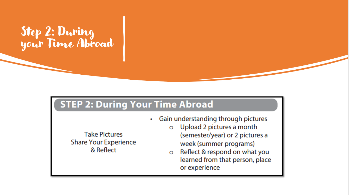 To help you gain understanding of your experience, we are requesting the use of pictures during your study abroad experience.